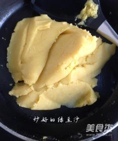 3. 捣碎绿豆:将煮熟的绿豆捞出,放入搅拌机中,加入适量的糖和猪油,搅拌成细腻的绿豆泥。